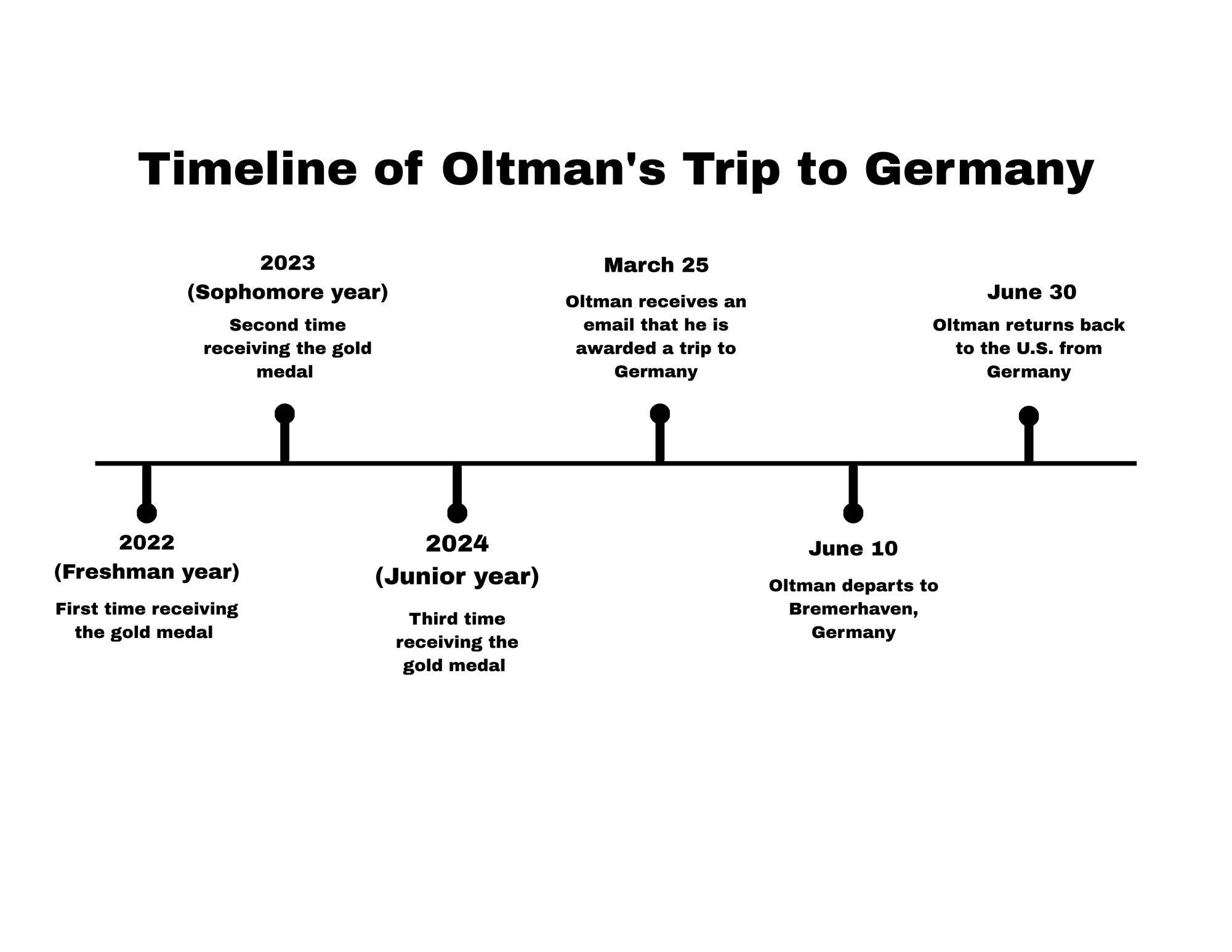 After winning three consecutive gold medal awards on the National German Exam in his freshman, sophomore and junior years, Oltman was one of 37 students across the nation granted a summer study trip to Germany.