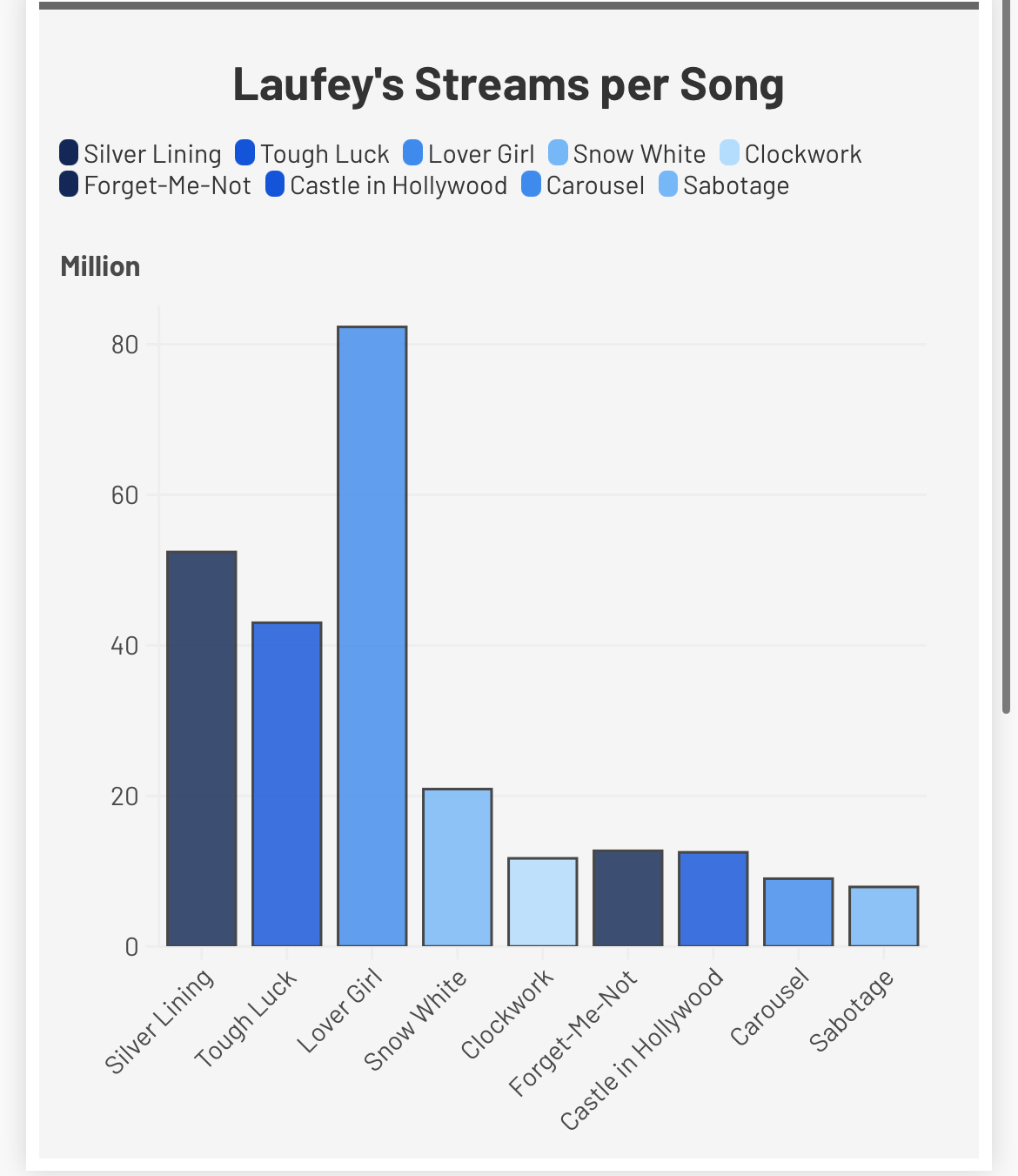 Laufey’s lyrics in the song “Silver Lining” take a turn to the happier dynamics in a relationship, as she sings, “The silver lining’s I’ll be there with you” three times, emphasizing how she will always be there for her partner even through the rough patches of their journey.