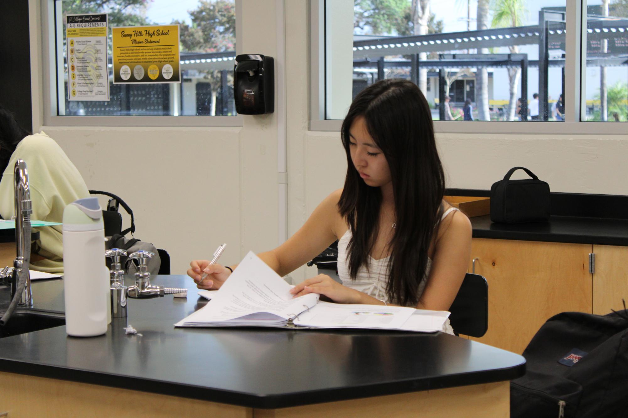 Junior Trinity Kim participates in the science olympiad team tryouts after school on Thursday, Oct. 9, in Room 112.